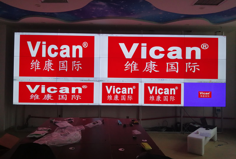 中國海洋大學(xué)嶗山校區(qū)這套會議大屏采用3x5拼接、55寸0.88mm液晶拼接屏,超窄邊拼縫設(shè)計,畫面清晰亮麗,主要用來會議信息顯示。