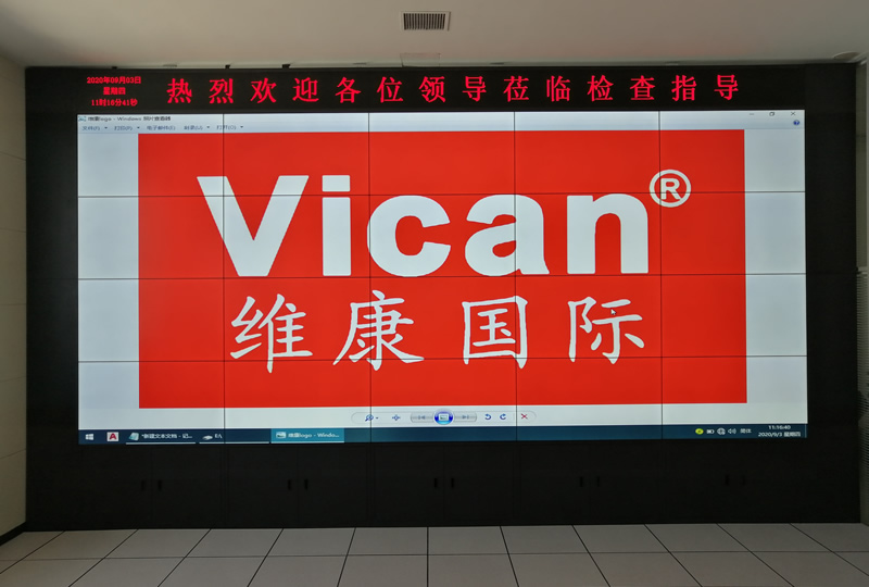本案例中,維康國際為日照銀行莒縣分行提供一套會議大屏,采用4x5拼接,55寸3.5mm液晶拼接屏,如上圖所示,大屏幕顯示清晰,拼接縫隙小,視覺體現(xiàn)效果好。