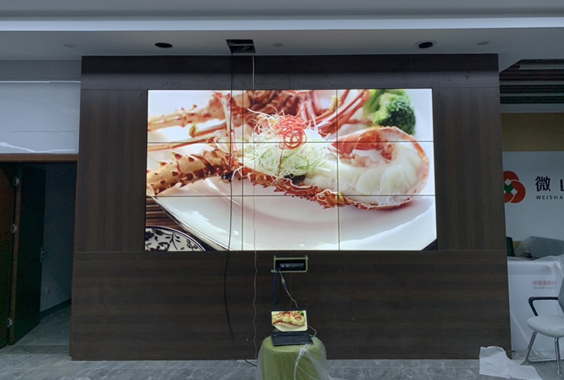 本案例中,維康國際為農(nóng)商銀行微山分行提供一套辦公室顯示大屏,由3x3拼接、46寸3.5mm液晶拼接屏組成,大屏幕顯示清晰,白平衡效果好。