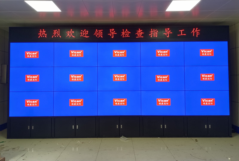 本案例中,維康國(guó)際為德州齊河紙業(yè)公司提供一套展廳拼接屏,采用3行5列、55寸3.5mm液晶拼接屏,如上圖所示。