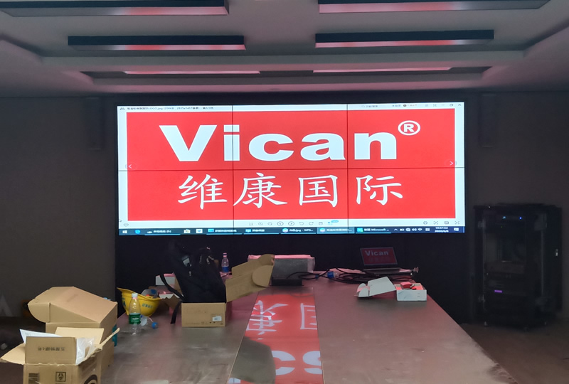 維康國(guó)際為北京天恒集團(tuán)安裝的這套會(huì)議室顯示屏,采用2x3、55寸液晶拼接屏,三星原裝面板,雙邊拼縫距離為1.7mm,主要用來會(huì)議顯示使用。