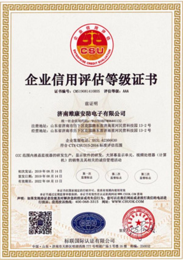 企業(yè)信用評估AAA證書