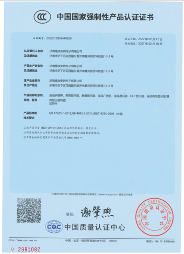 液晶拼接屏3C認(rèn)證