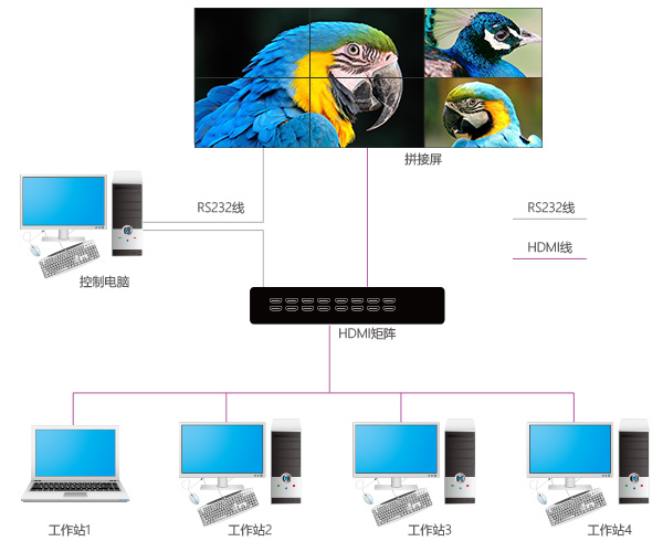 2、傳輸2K高清信號(hào)源,支持多臺(tái)電腦信號(hào)同時(shí)上大屏顯示,而且可實(shí)現(xiàn)任意切換顯示功能。