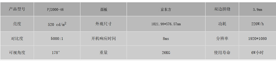 4、京東方3.9mm46寸液晶拼接屏,左上拼縫2.0mm,右下拼縫1.9mm,主要用于視頻監(jiān)控顯示與會(huì)議顯示。