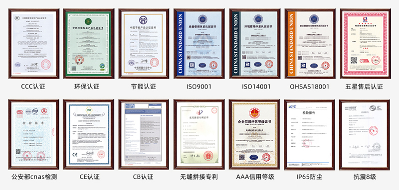 維康國際通過了ISO9001質(zhì)量管理體系、ISO14001、OHSAS18001、3C、節(jié)能認(rèn)證、環(huán)保認(rèn)證、公安部cnas檢測報告、抗震8級、防塵、CE、CB、FCC、ROHS、外觀專利、大屏軟件專利等,在支持客戶參與招投標(biāo)項目中有很大優(yōu)勢。