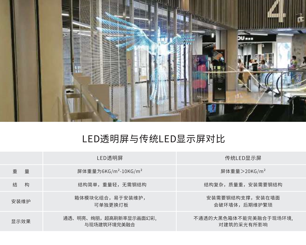 LED透明屏燈板厚度為2-3mm,電源盒最小可達50mm。
