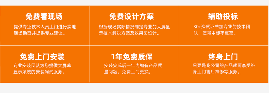 公司提供全面的技術(shù)方案設(shè)計服務(wù),同時提供專業(yè)技術(shù)上門安裝與調(diào)試,特別是一些大型的弧形屏顯示領(lǐng)域,對于LED軟模組的拼接有很高的技術(shù)要求,另外公司還提供長期質(zhì)保以及上門售后服務(wù)。