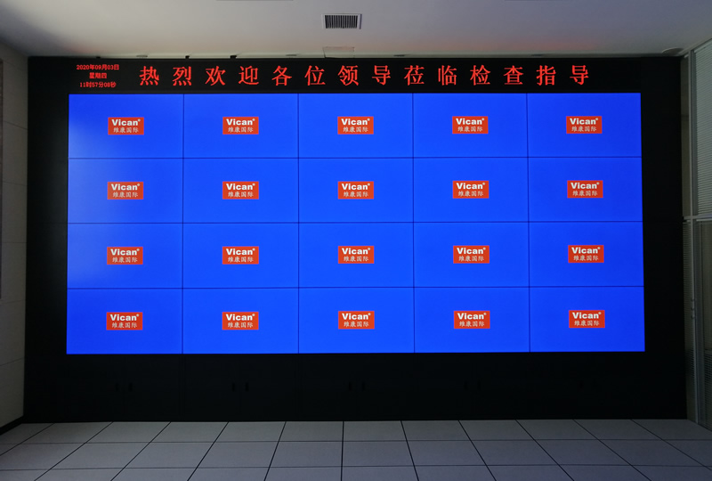 本案例中,維康國際為日照銀行莒縣分行提供一套會議大屏,采用4x5拼接,55寸3.5mm液晶拼接屏,如上圖所示,大屏幕顯示清晰,拼接縫隙小,視覺體現(xiàn)效果好。