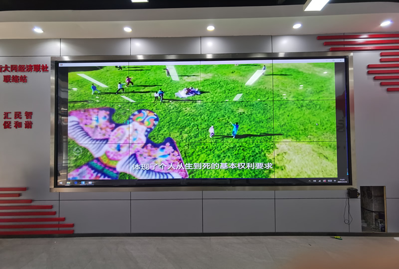 本案例中,是維康國際為廣州大崗村委提供的一套觸摸顯示屏,由3行4列、55寸液晶拼接屏,搭配紅外觸摸逛組成,如上圖所示。