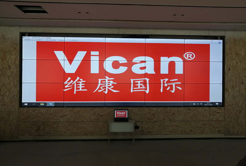 本案例中,維康國(guó)際為威海市金鼎璽悅售樓部提供一套顯示大屏,由3x5拼接、46寸3.5mm液晶拼接屏組成,采用內(nèi)嵌的壁掛式安裝,大屏幕顯示清晰亮麗,如上圖所示。