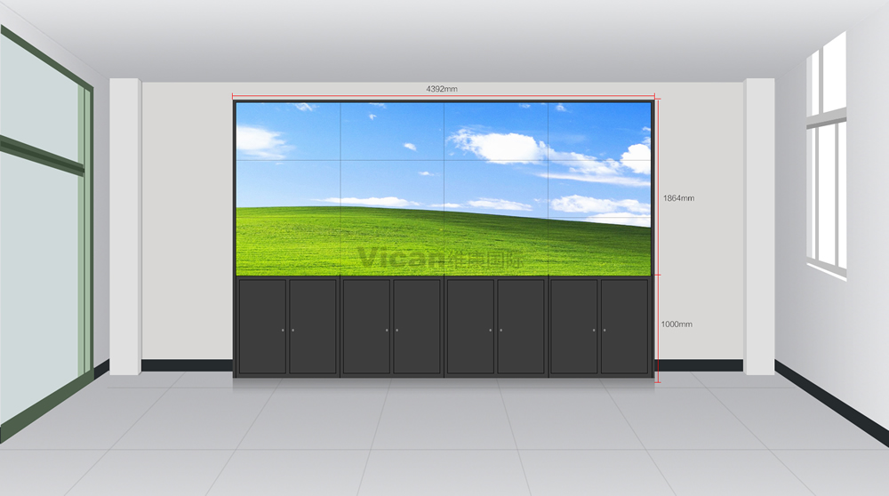 3x4機柜55寸無縫拼接屏尺寸效果圖